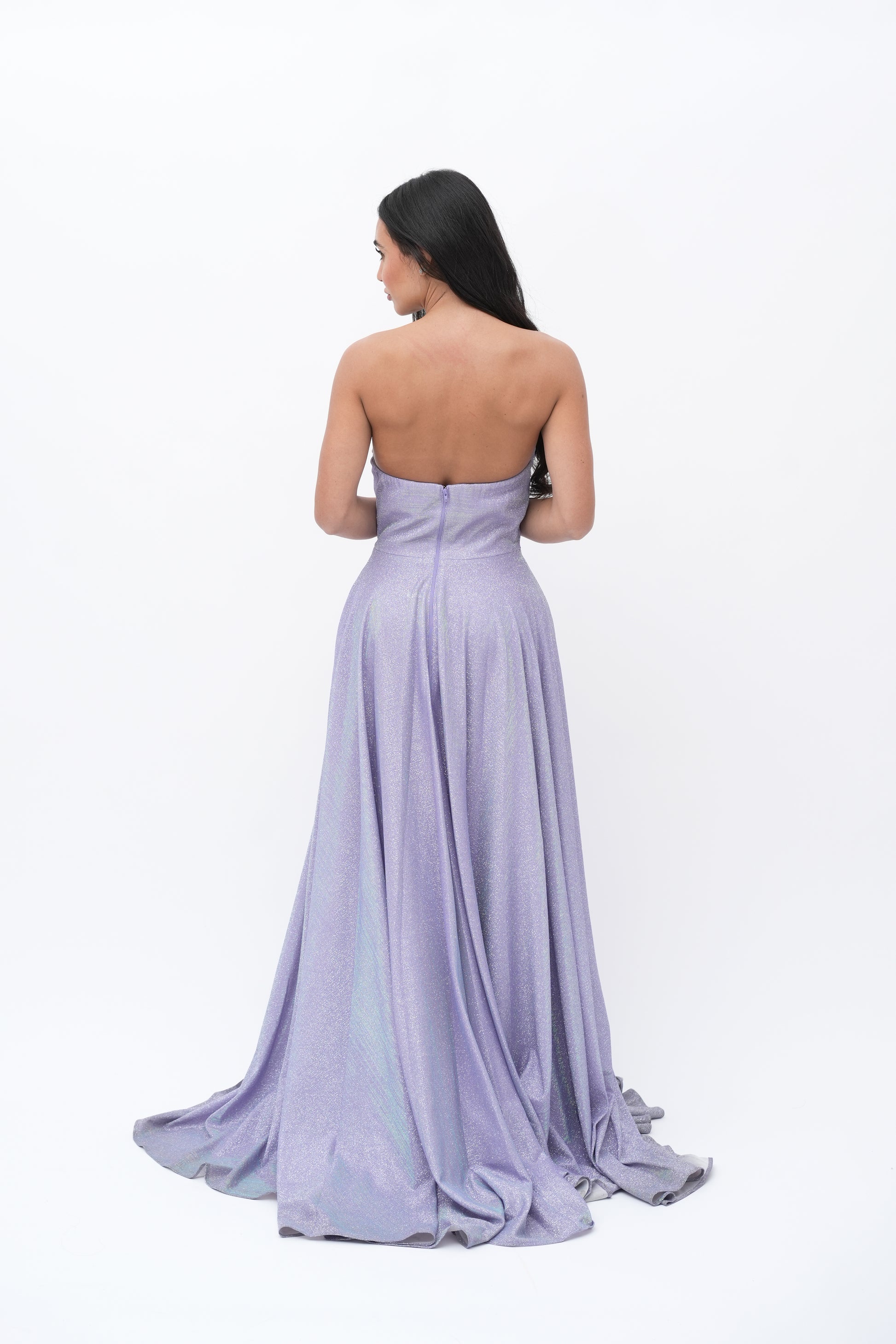 “Bagliore Lilla” Un titolo che evoca la luminosità delicata e l’eleganza del colore lilla glitterato.