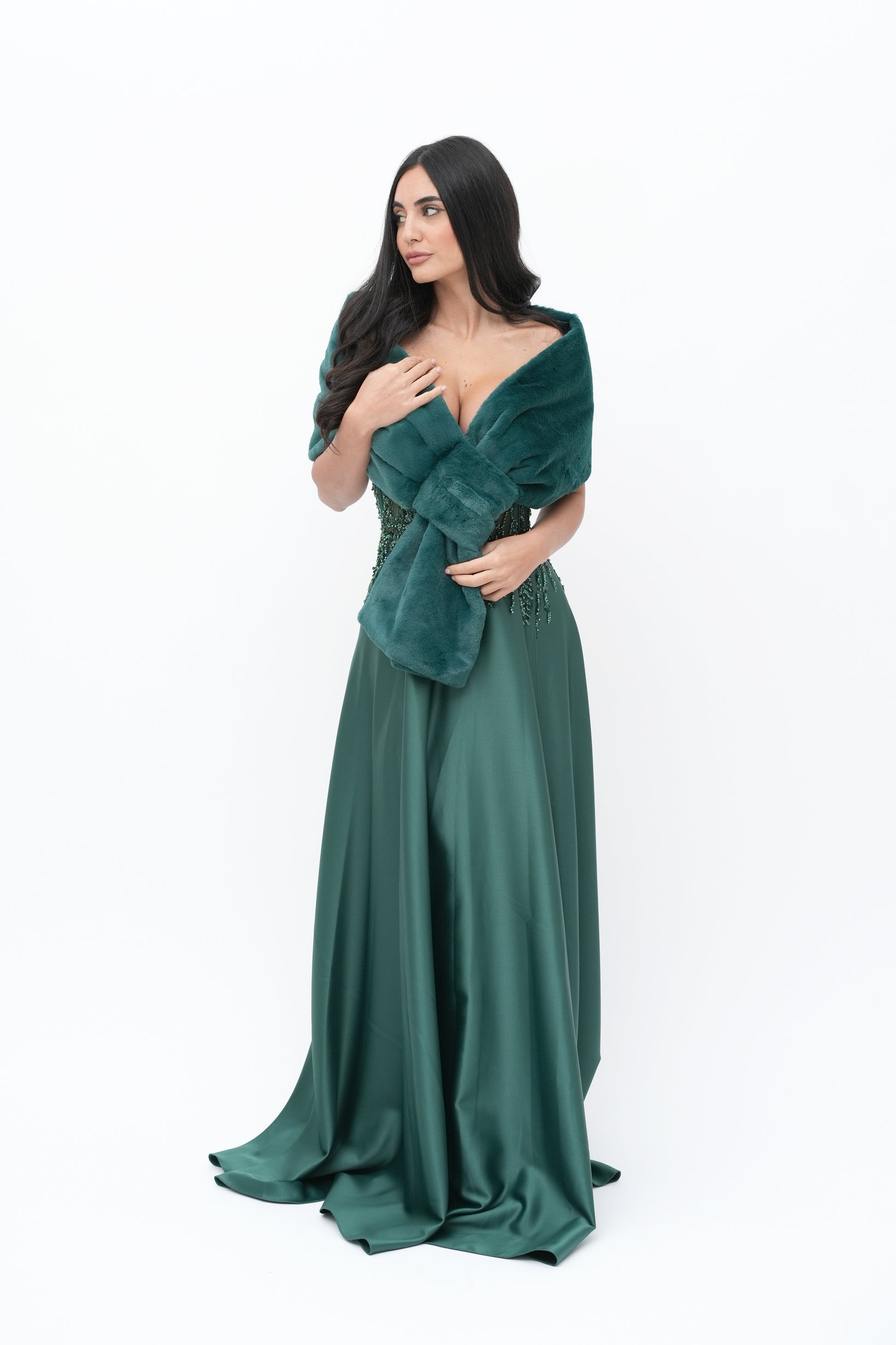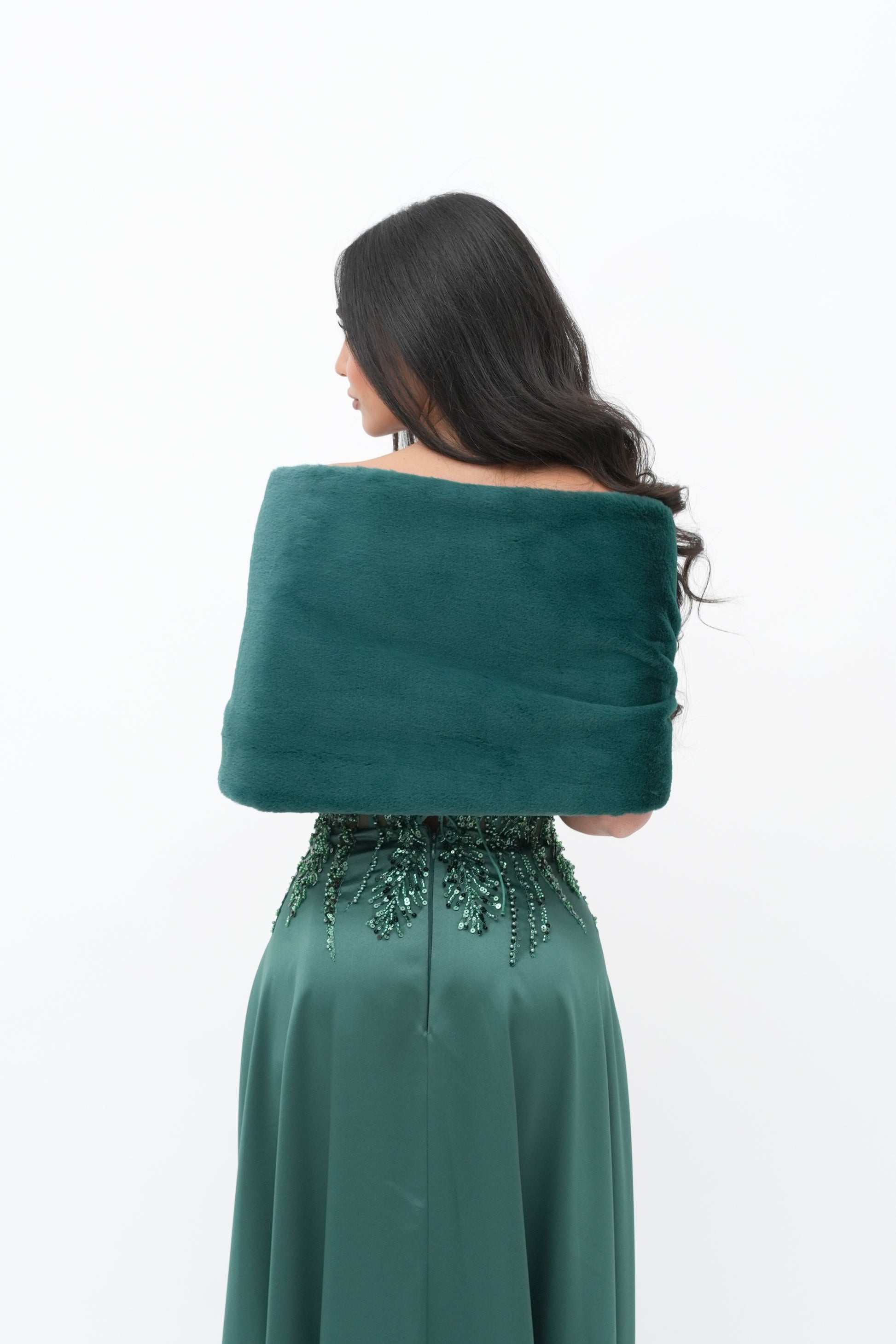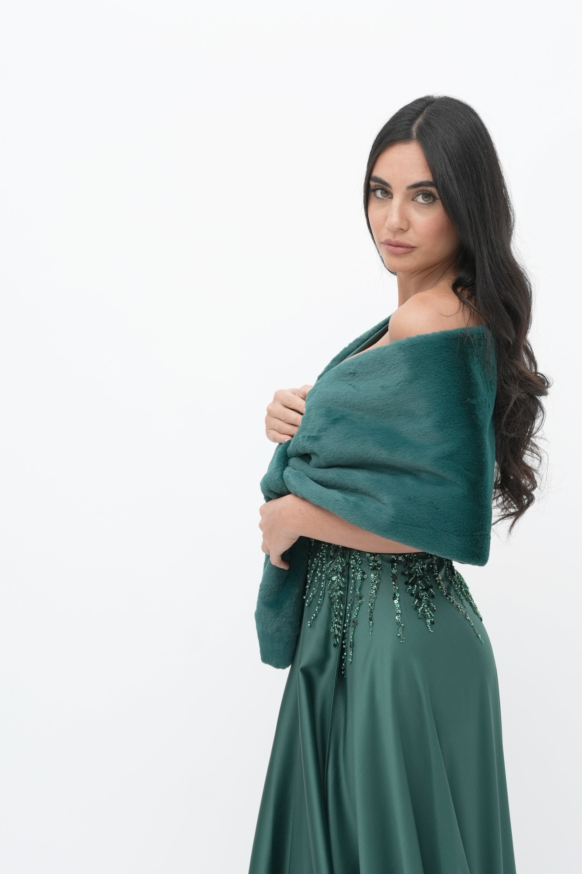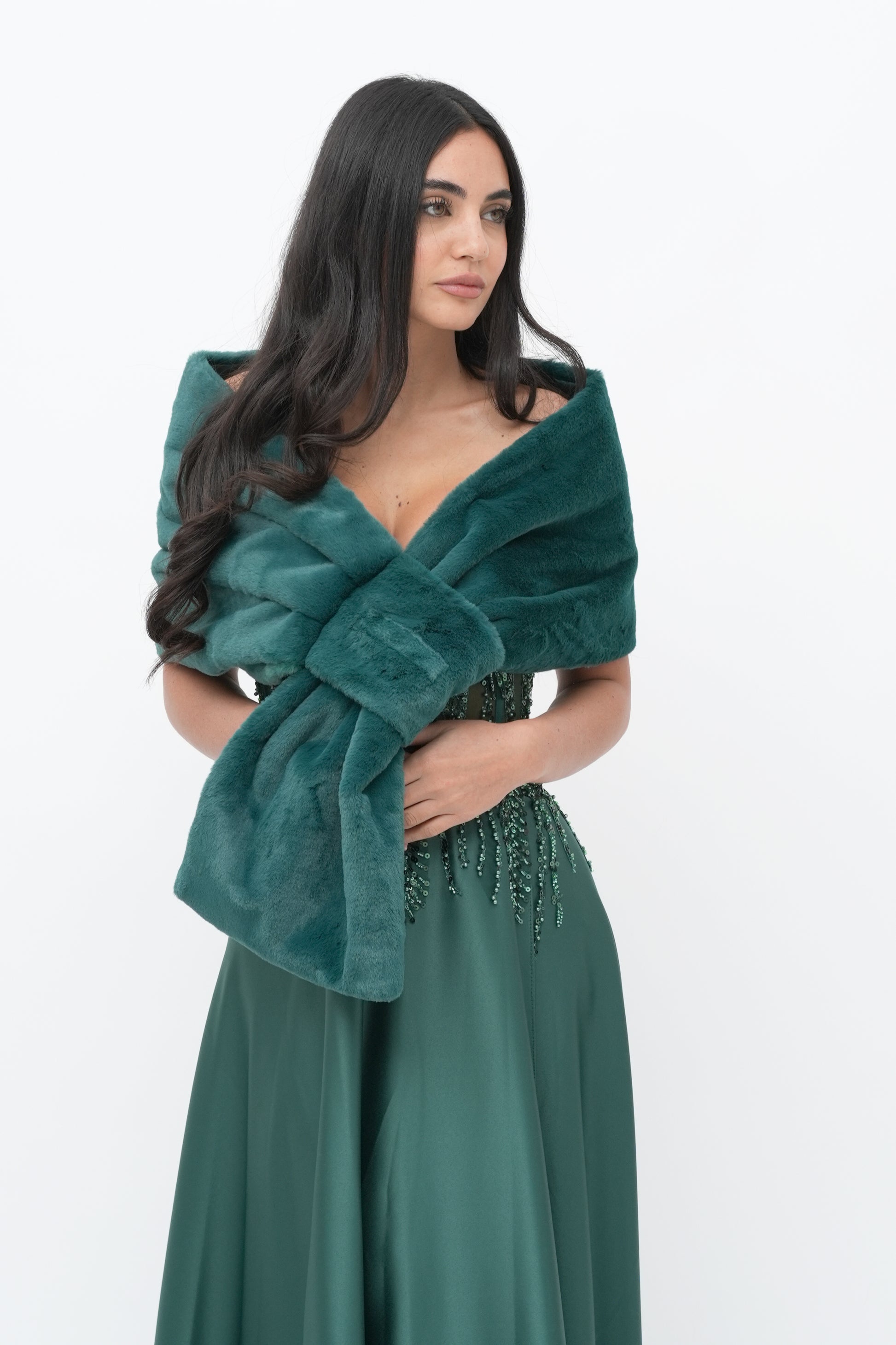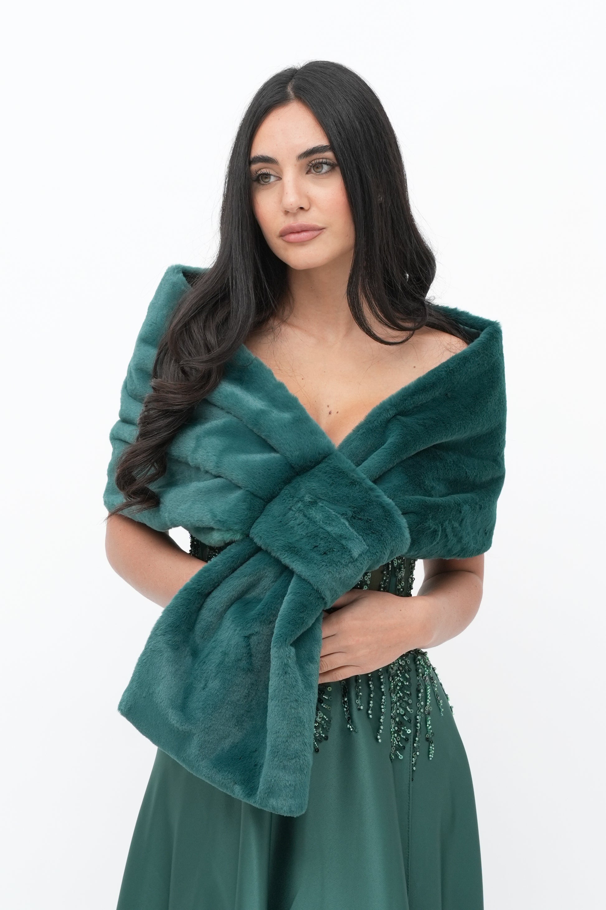 Questa stola in pelliccia ecologica è l'accessorio perfetto per aggiungere un tocco di lusso e calore al tuo look durante un matrimonio invernale. Realizzata con un materiale ecologico di alta qualità, la stola offre una texture morbida e vellutata che imita splendidamente la pelliccia naturale, senza compromettere l'etica e il rispetto per l'ambiente. La pelliccia ecologica è delicata al tatto e avvolge la figura in modo elegante, creando un effetto di lusso senza rinunciare a un tocco di sostenibilità.